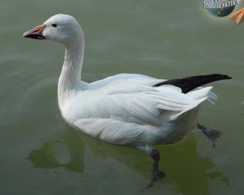 A white goose is completely white, only the ends of its wings are black. The white goose flies well, runs and swims fast, but it cannot dive. Gooses eat usually on land.