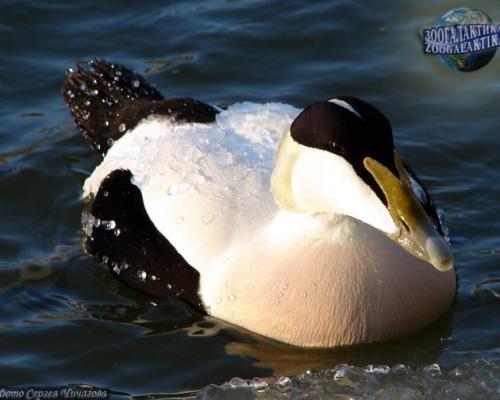 The eider sleeps and eats on water. The eider swims and dives very well.