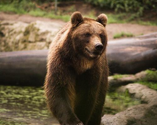 A brown bear is one of the biggest wild animals on the Earth. It has a powerful body covered with a thick fur, strong paws, a massive head with small ears and eyes. It lives in a forest, feeds on berries, acorns, nuts, it can dine on insects, worms, lizards, frogs, mice and fish. This huge wild animal is a sweet tooth at the same time! He likes honey very much.