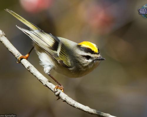 A kinglet is a beautiful small bird. The kinglet feathers are fluffy and because of this it is like a small green ball. And there is a bright red or orange cap on its head.