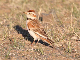 Larks Alaudidae Greater short-toed lark Mediterranean short-toed lark Desert lark Bimaculated lark Horned lark Temminck's lark Greater hoopoe-lark Black-crowned sparrow-lark Turkestan short-toed lark Oriental skylark Arabian lark Bar-tailed lark Crested lark Singing bush lark Calandra lark Wood lark Rufous-capped lark Rudd's lark Archer's lark Ash's lark Thick-billed lark Botha's lark Raso lark Red lark Sharpe's lark Eurasian skylark Mongolian lark