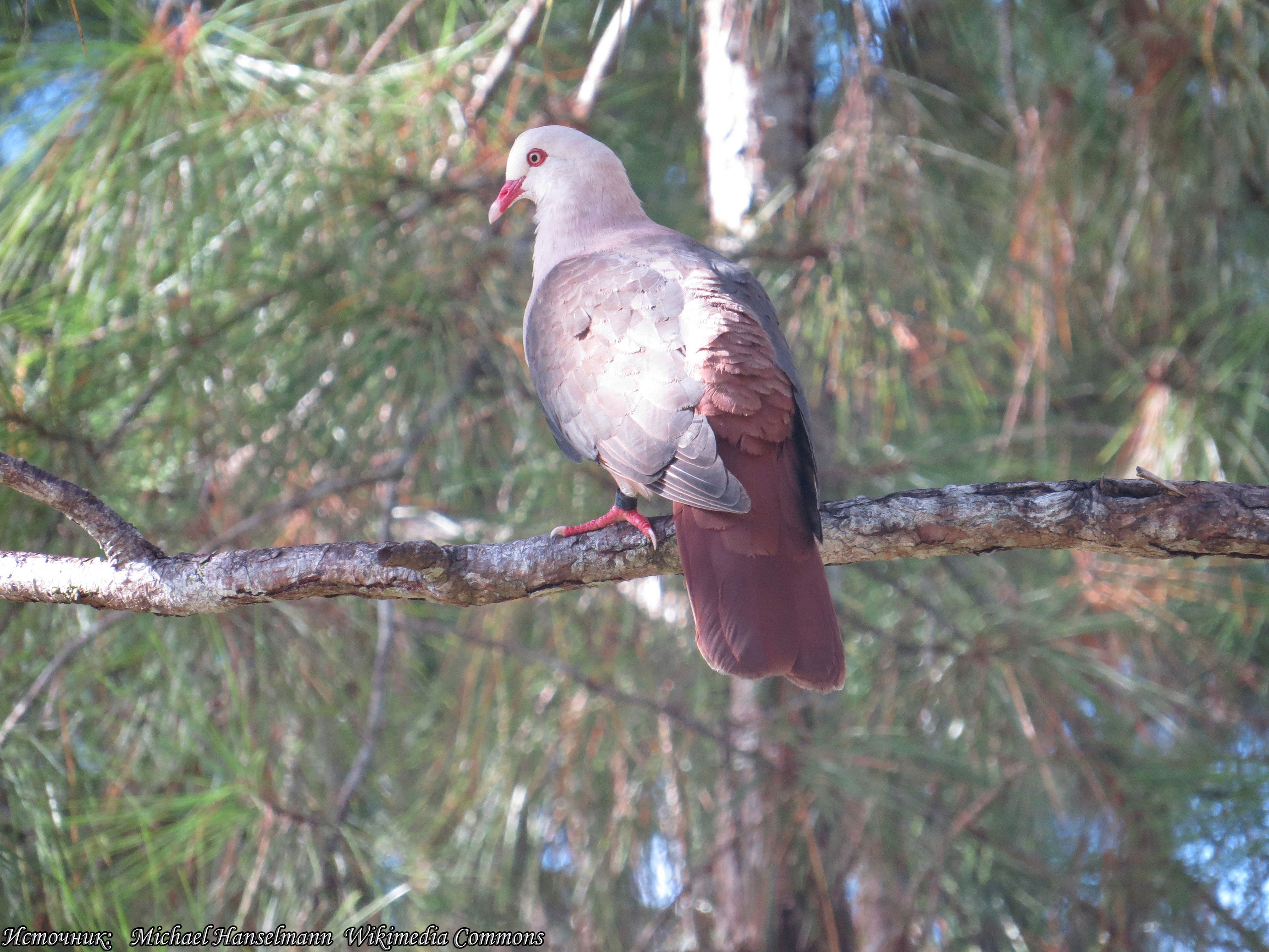 La paloma rosa de Reunión (Nesoenas mayeri duboisi, pero véase más abajo)